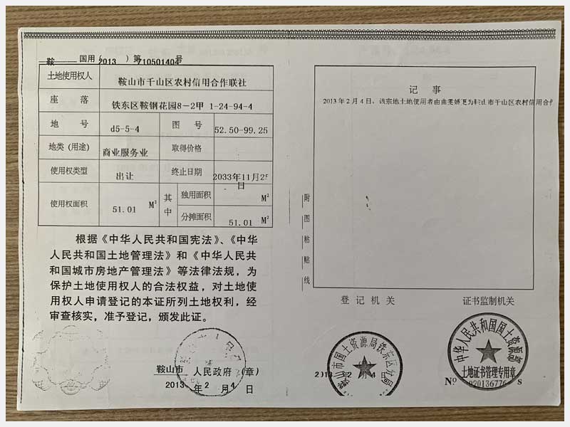 地址:鞍山市鐵東區(qū)鞍鋼花園 標(biāo)的號:68