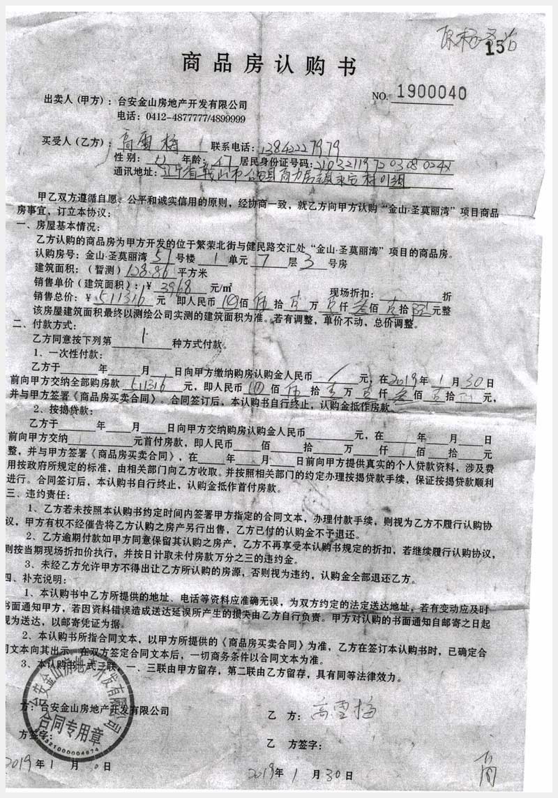 140號(hào) 臺(tái)安縣金山圣莫麗灣57號(hào)樓1單元7層3號(hào)房產(chǎn)