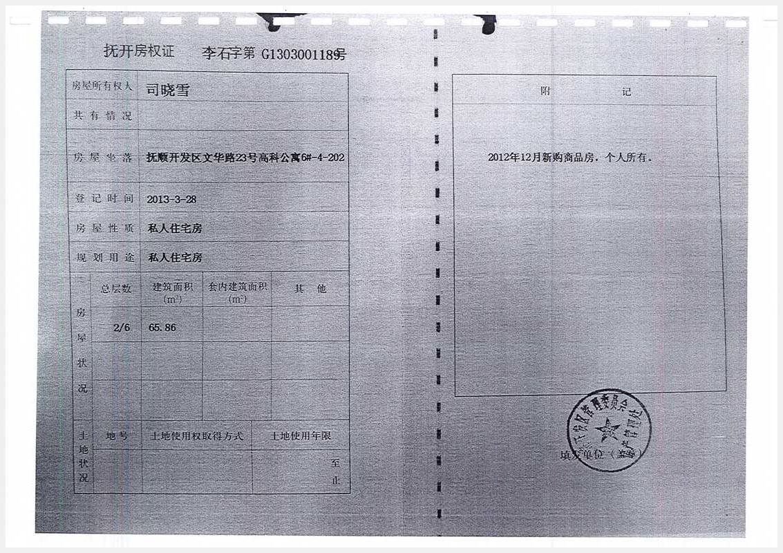 名稱:撫順開發(fā)區(qū)文華路23號高科公寓6#房產(chǎn) 面積:65.86㎡ 瀏覽次數(shù):1199