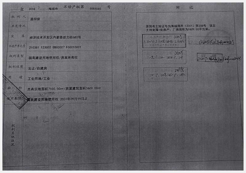 名稱:海城經(jīng)濟開發(fā)區(qū)冉家委后力街682號房產(chǎn)及土地使用權(quán) 面積:房產(chǎn):1609㎡;土地:7100㎡ 瀏覽次數(shù):812