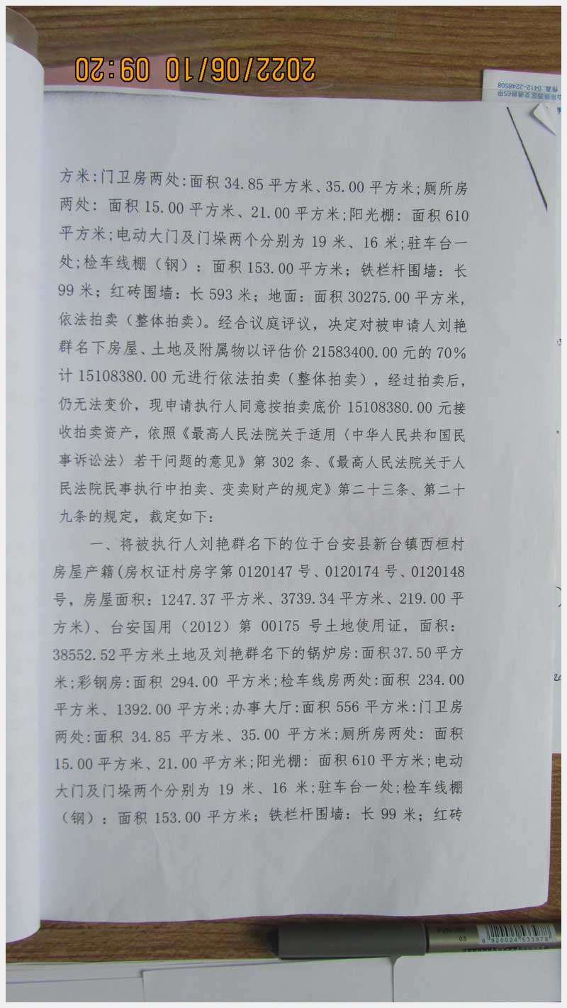 名稱:臺(tái)安縣新臺(tái)鎮(zhèn)西桓村房產(chǎn)及土地使用權(quán) 面積:房產(chǎn):5205.71㎡;土地:38552.52㎡ 瀏覽次數(shù):977