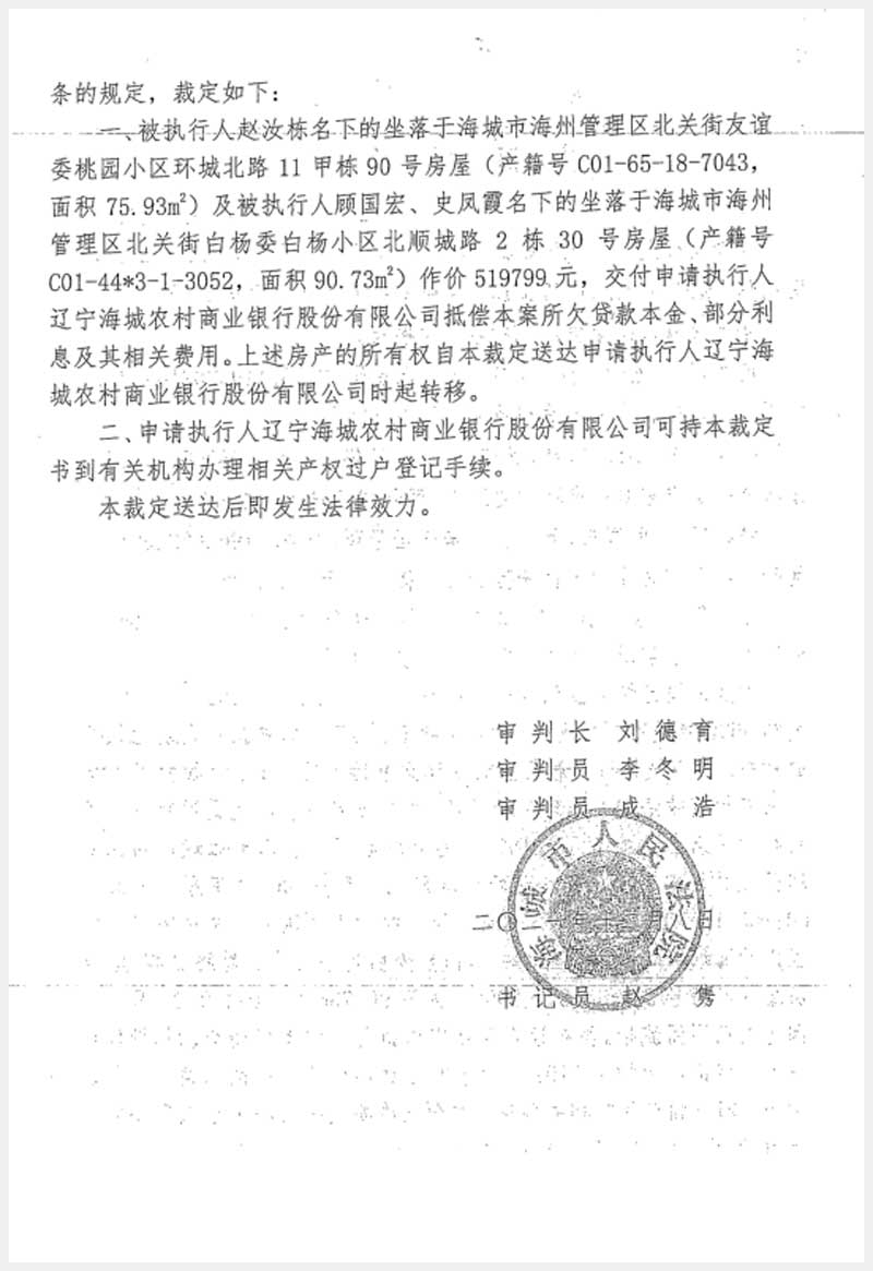 195號(hào) 海城市海州管理區(qū)北關(guān)街白楊委白楊小區(qū)北順城路2棟3單元5層30號(hào)房產(chǎn)