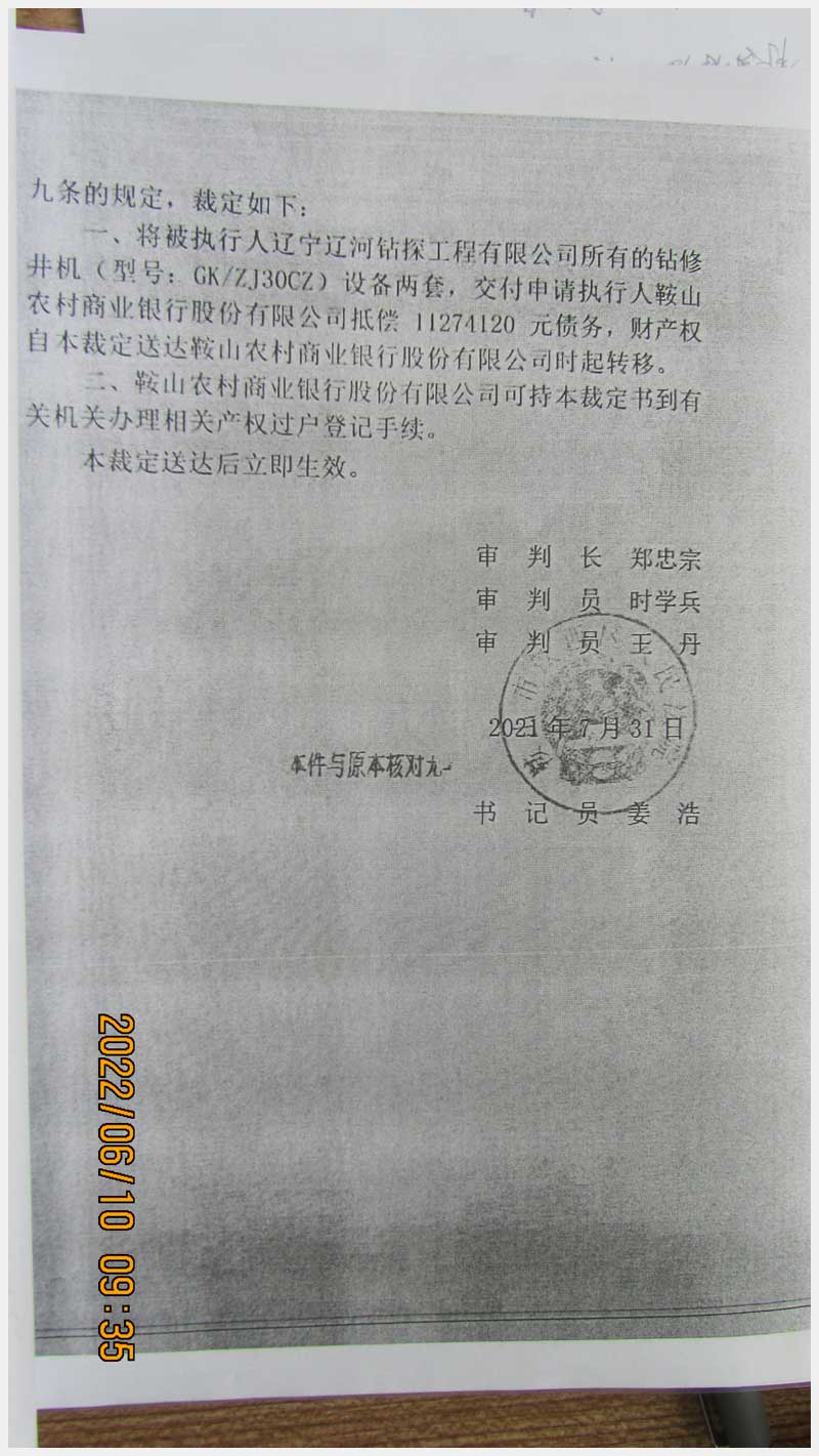 名稱:遼寧遼河鉆探工程有限公司機器設(shè)備 面積:11臺(套) 瀏覽次數(shù):1274