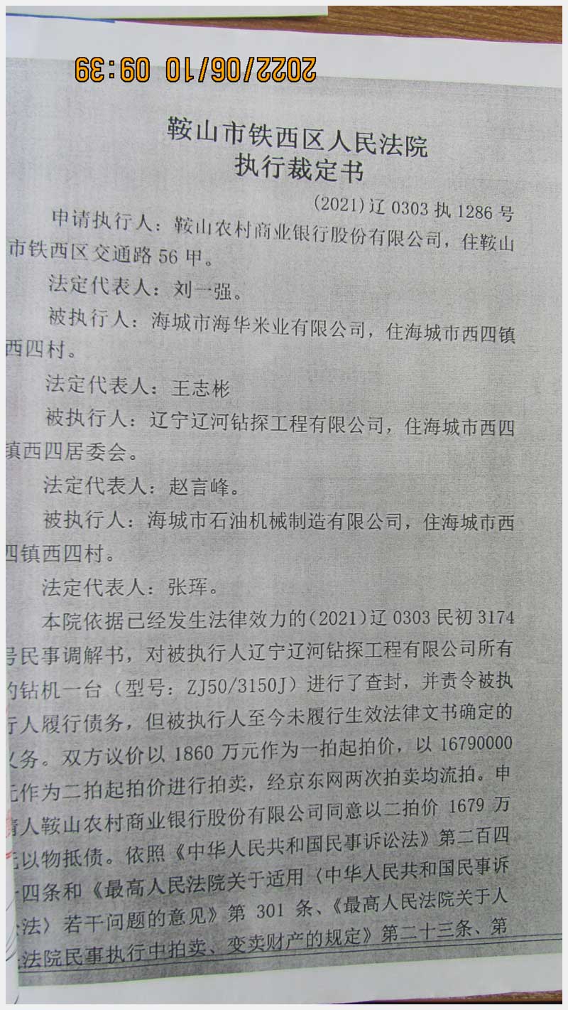 地址:遼寧遼河鉆探工程有限公司院內(nèi) 標的號:88