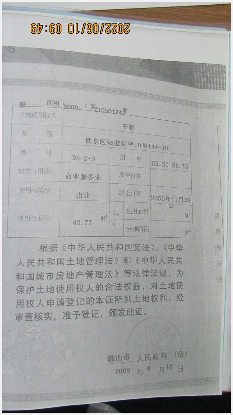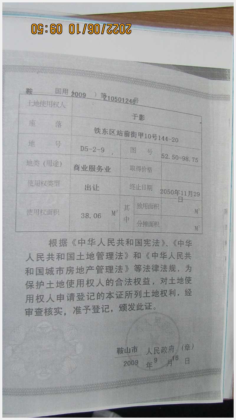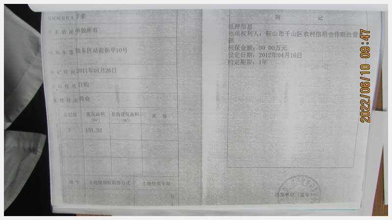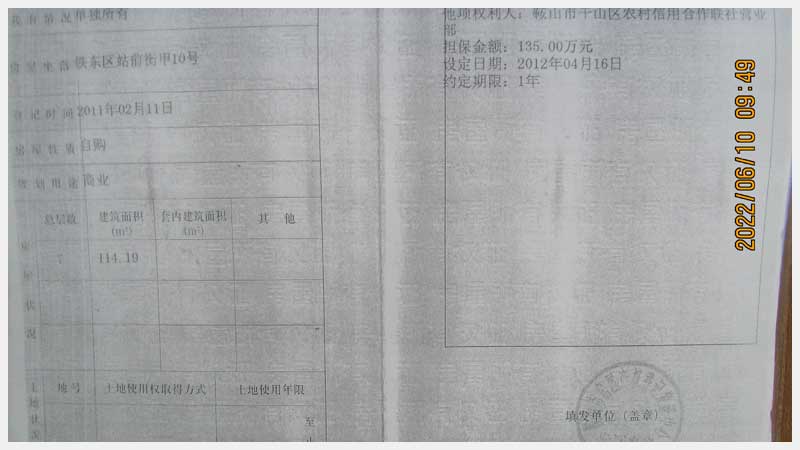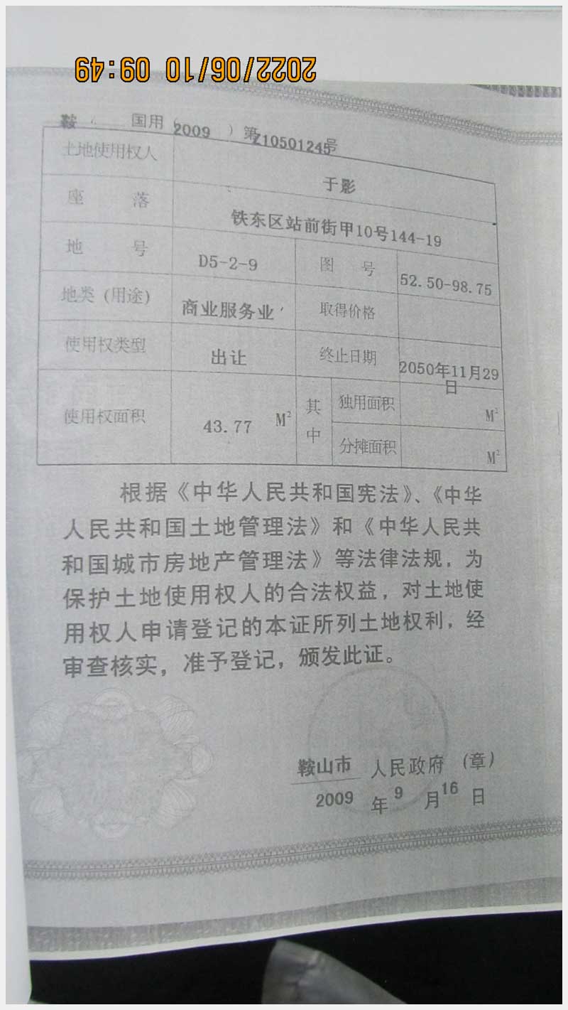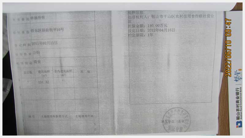 名稱:鞍山市鐵東區(qū)站前街甲10號房產(chǎn) 面積:342.77㎡ 瀏覽次數(shù):1452