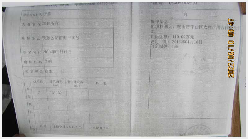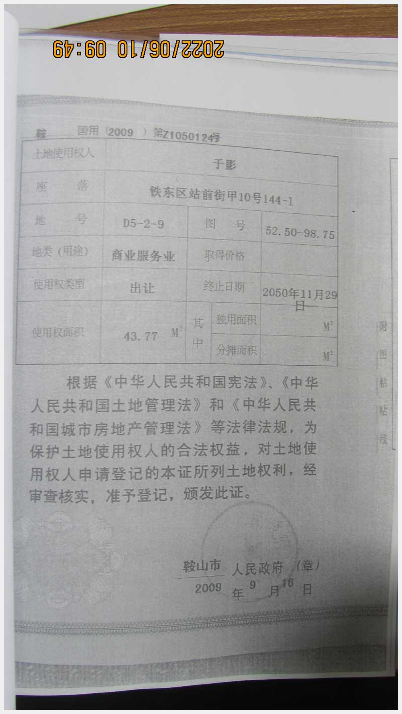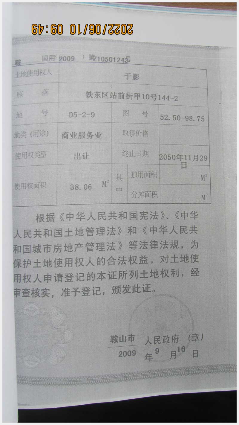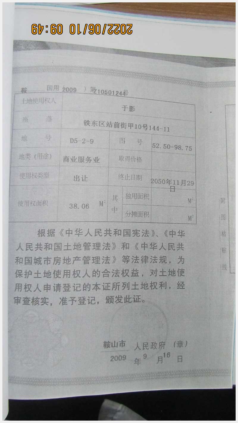 名稱:鞍山市鐵東區(qū)站前街甲10號房產(chǎn) 面積:342.77㎡ 瀏覽次數(shù):1452