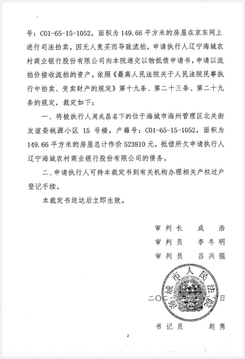 地址:海城市海洲管理區(qū)北關(guān)街友誼委桃源小區(qū) 標(biāo)的號:200