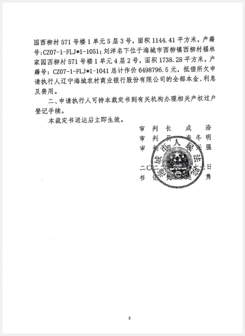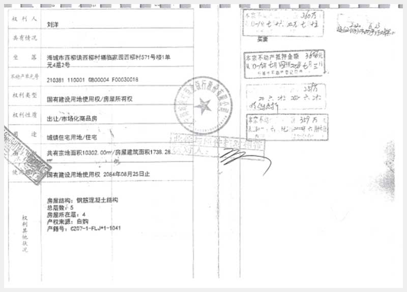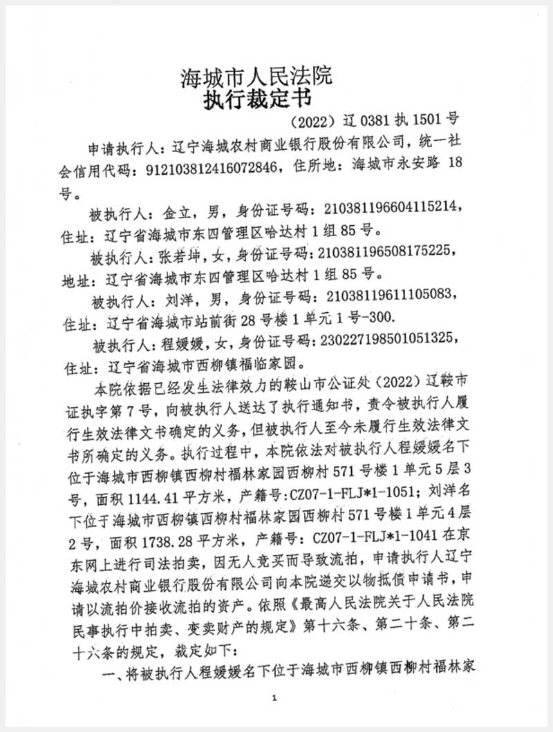 213-2號(hào) 海城市西柳鎮(zhèn)西柳村福臨家園西柳村571號(hào)樓1單元4層2號(hào)房產(chǎn)