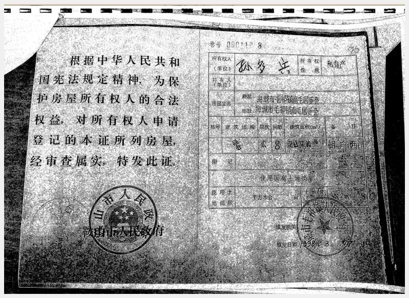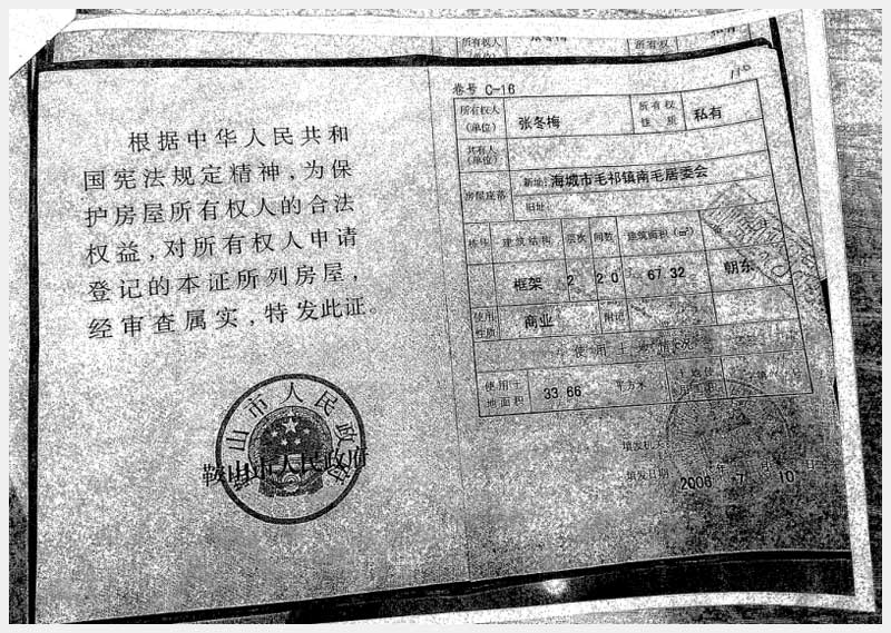 地址:海城市毛祁鎮(zhèn)南毛居委會(huì) 標(biāo)的號(hào):216-1