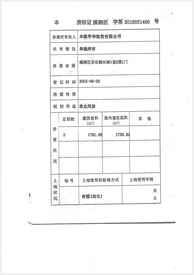 40號 本溪市溪湖區(qū)后石路3C棟1至2層1門、2門房產(chǎn)