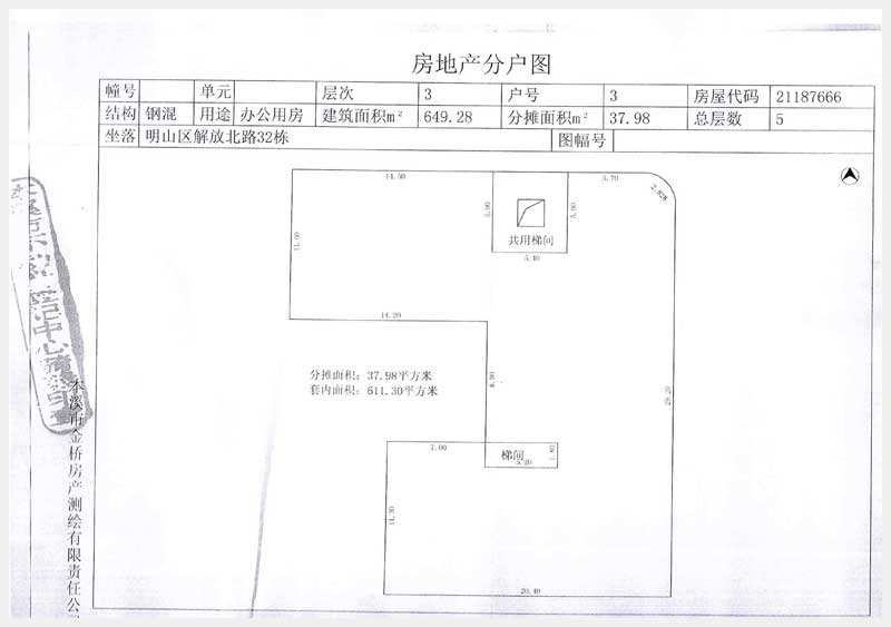 名稱:本溪市明山區(qū)解放北路32東3層房產(chǎn) 面積:649.28 ㎡ 瀏覽次數(shù):963
