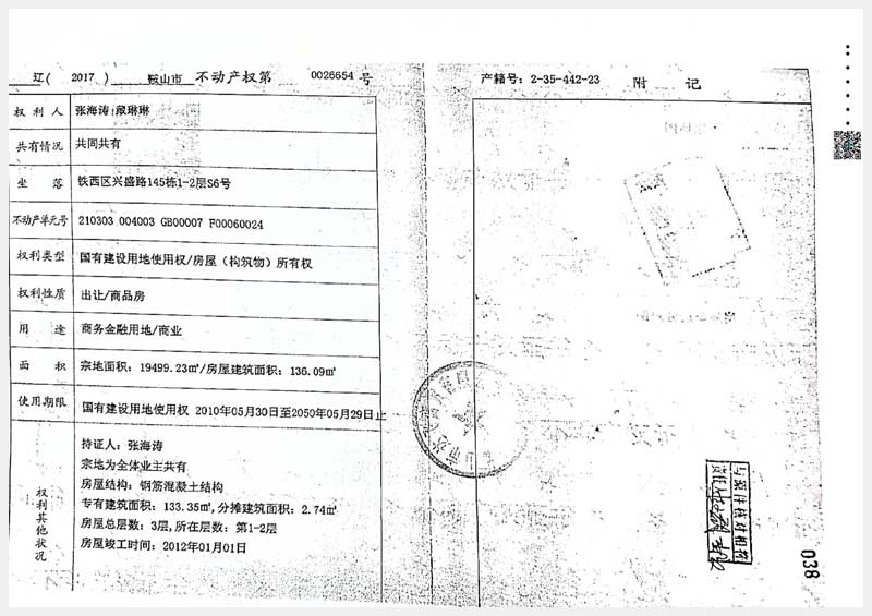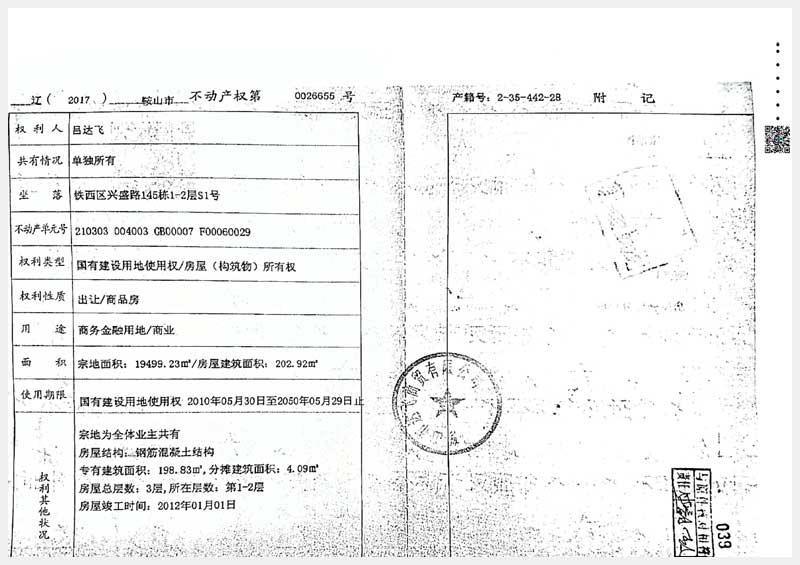名稱:鞍山市鐵西區(qū)興盛路143棟、145棟6處房產(chǎn) 面積:1490.21㎡ 瀏覽次數(shù):1191