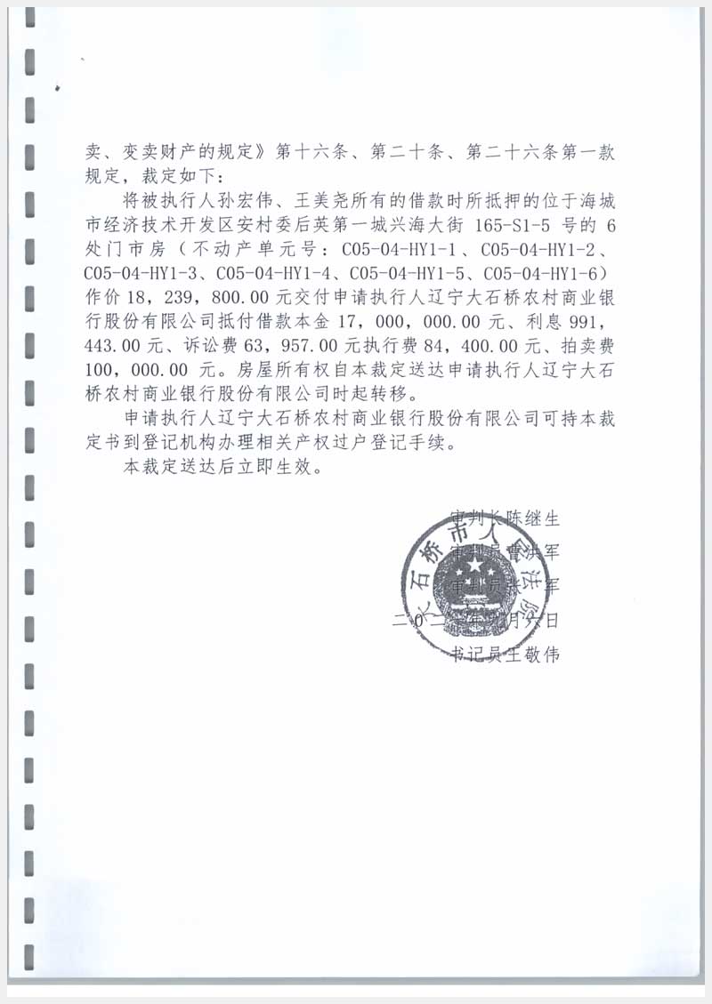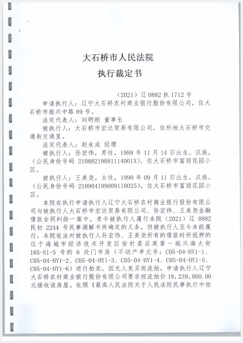 16號 海城市經(jīng)濟技術(shù)開發(fā)區(qū)安村委后英第一城興海大街165-S1-6號6處房產(chǎn)