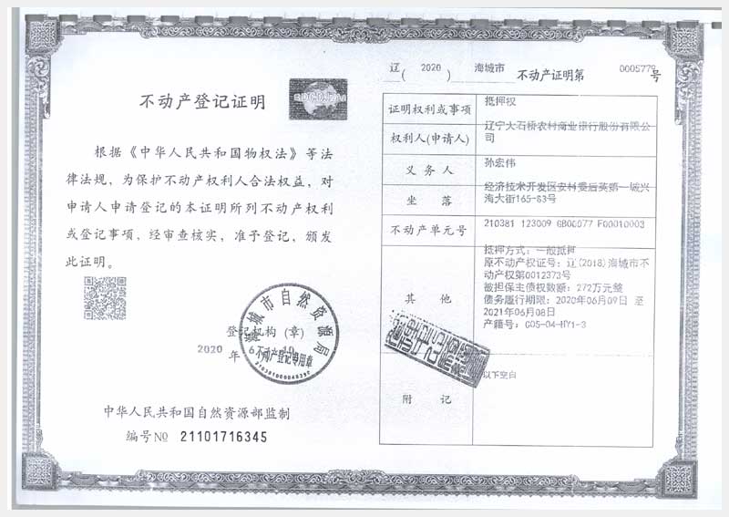 地址:海城市經(jīng)濟技術(shù)開發(fā)區(qū)安村委后英第一城 標的號:16
