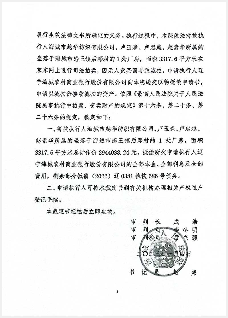 254號 海城市感王鎮(zhèn)后鄧村房產(chǎn)、土地及機(jī)器設(shè)備