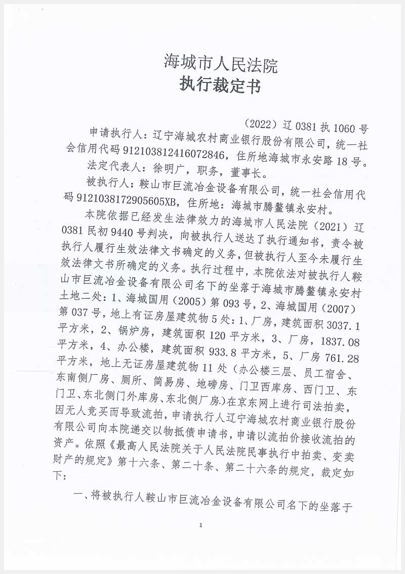 名稱:海城市騰鰲鎮(zhèn)永安村房產(chǎn)及土地使用權 面積:房產(chǎn):6689.26㎡;土地:34399㎡ 瀏覽次數(shù):1244