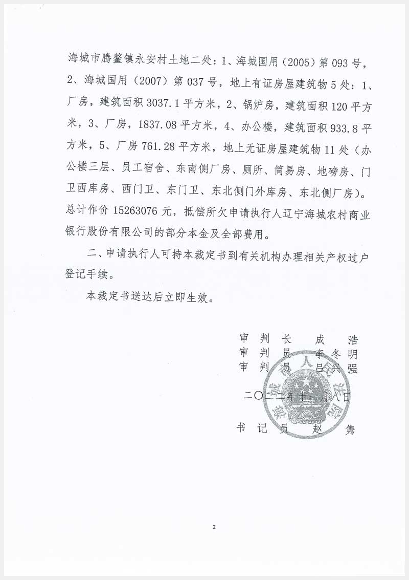 255號 海城市騰鰲鎮(zhèn)永安村房產(chǎn)及土地使用權