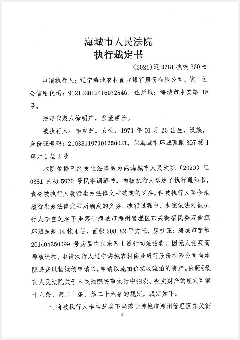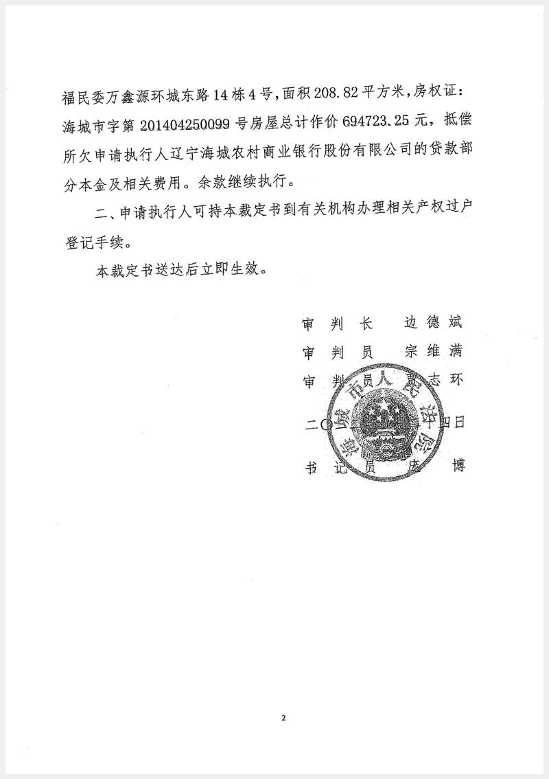 261號(hào) 海城市海州管理區(qū)東關(guān)街富民委萬(wàn)鑫源環(huán)城東路14棟4號(hào)房產(chǎn)