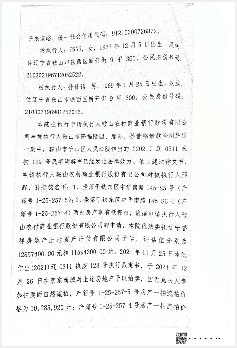 名稱:鞍山市鐵東區(qū)中華南路145-S5、145-S6號房產(chǎn) 面積:716.29㎡/717.69㎡ 瀏覽次數(shù):946