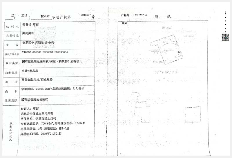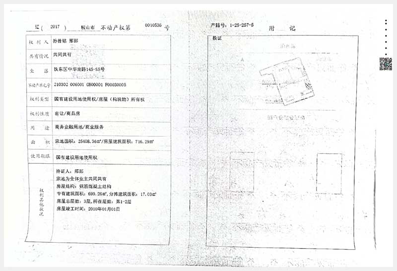 100號 鞍山市鐵東區(qū)中華南路145-S5、145-S6號房產(chǎn)