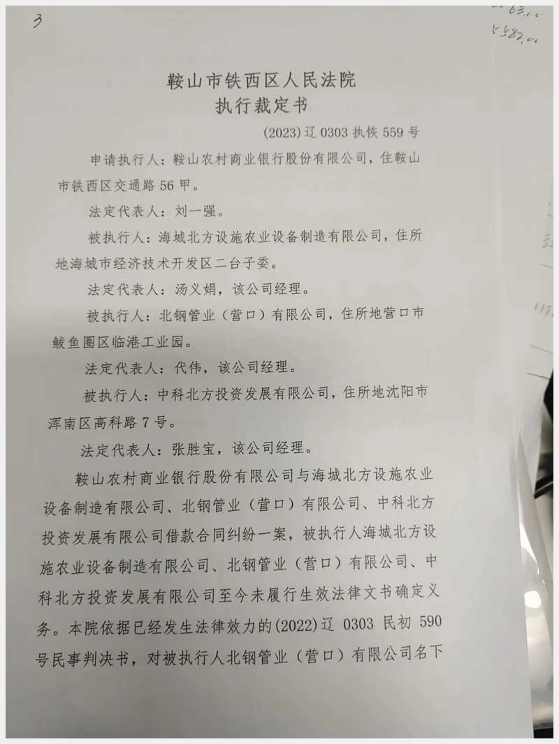 101號 北鋼管業(yè)(營口)有限公司所屬的機器設備