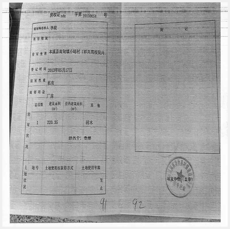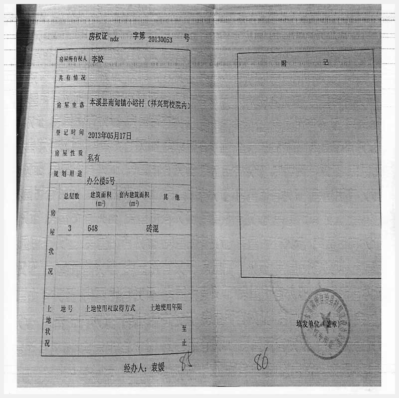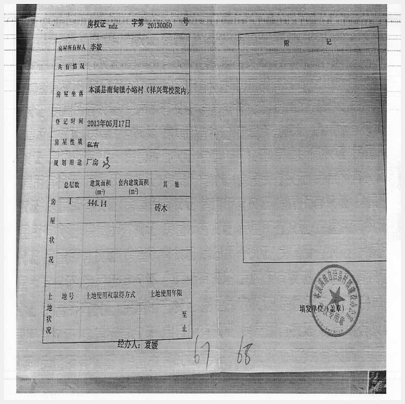 名稱:本溪縣南甸鎮(zhèn)小峪村(祥興駕校院內(nèi))房產(chǎn) 面積:4302.56㎡ 瀏覽次數(shù):499