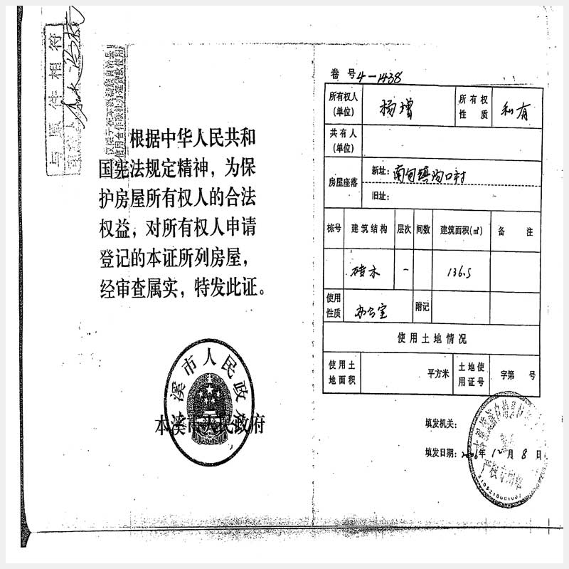 名稱:本溪縣南甸鎮(zhèn)溝口村房產(chǎn) 面積:1384.3㎡ 瀏覽次數(shù):525