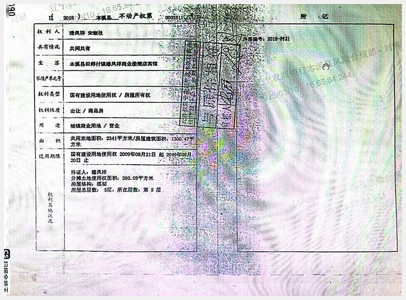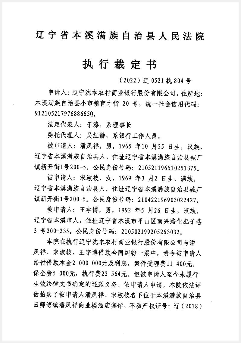 152號(hào) 本溪滿(mǎn)族自治縣田師付鎮(zhèn)潘鳳祥商業(yè)樓酒店賓館