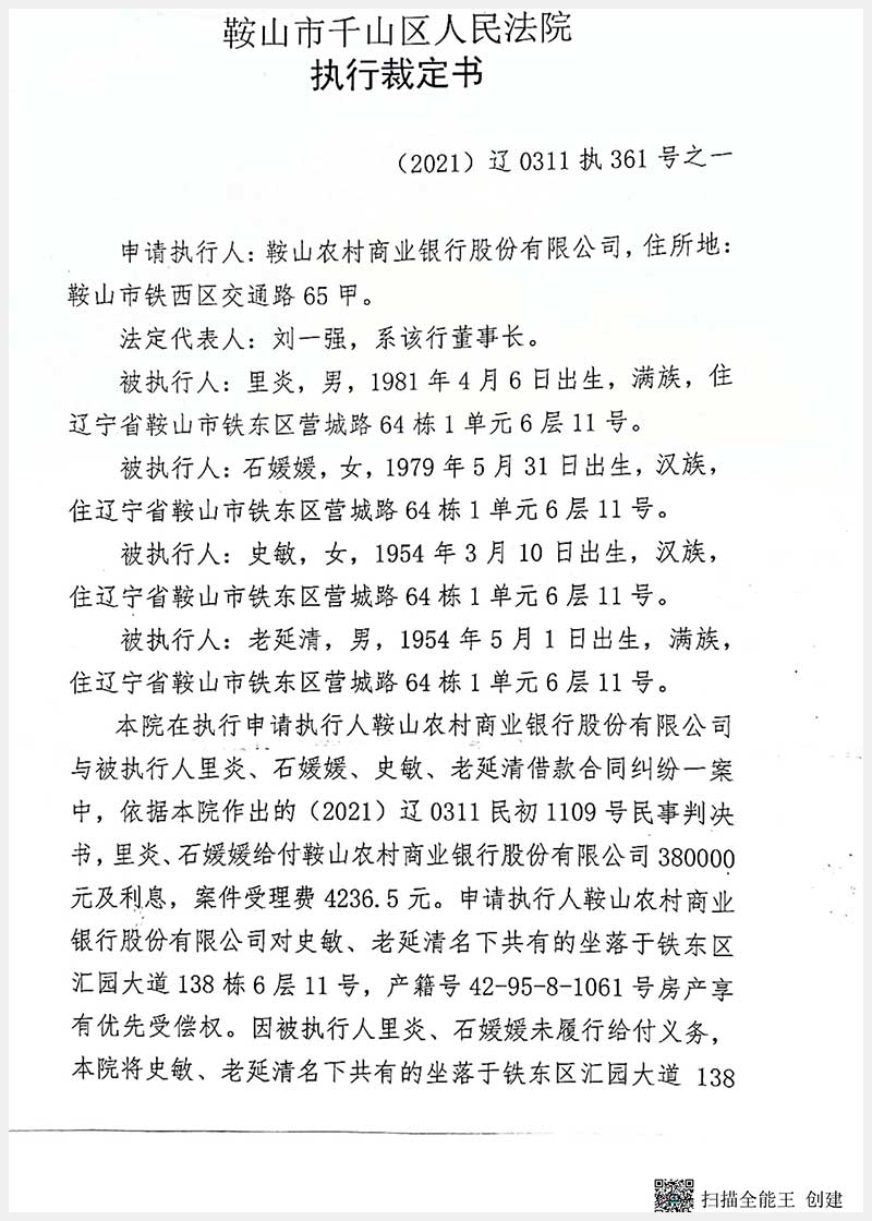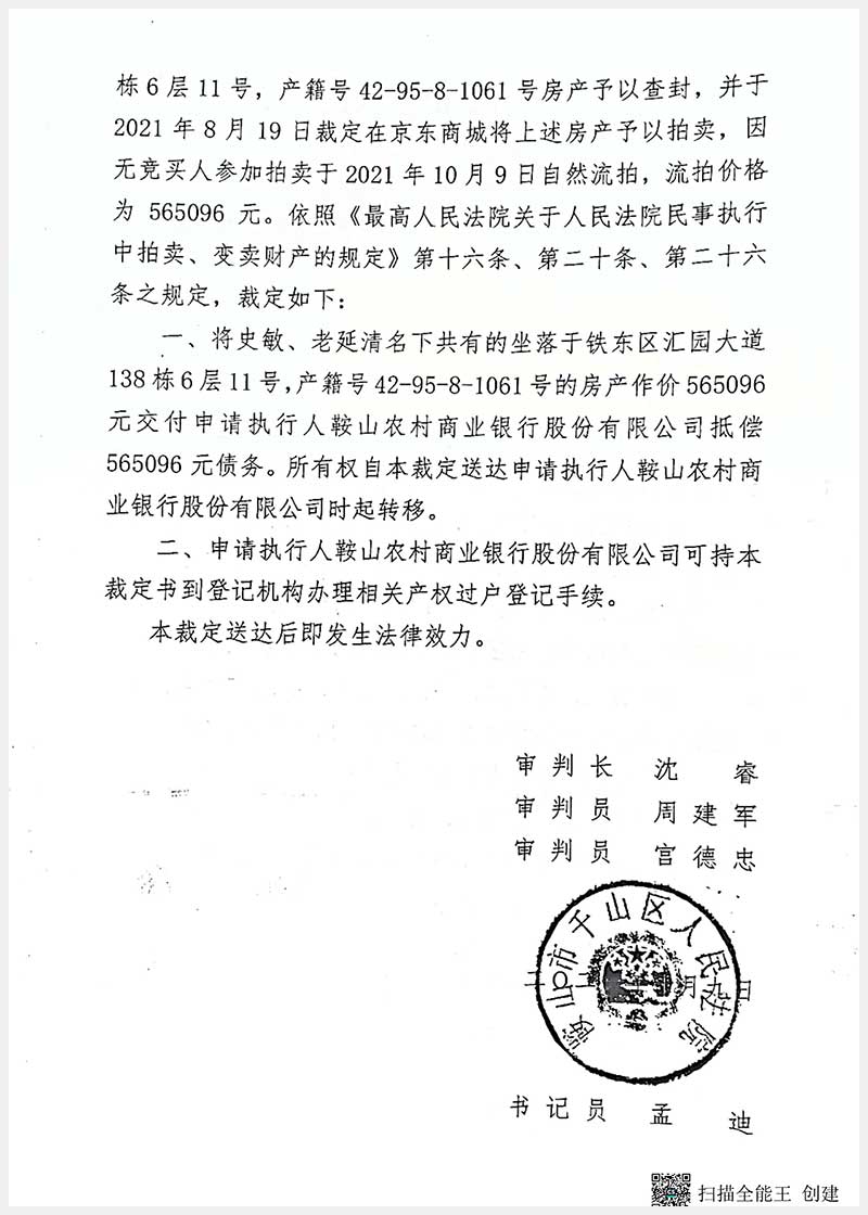 112號 鞍山市鐵東區(qū)匯園大道138棟6層11號房產(chǎn)