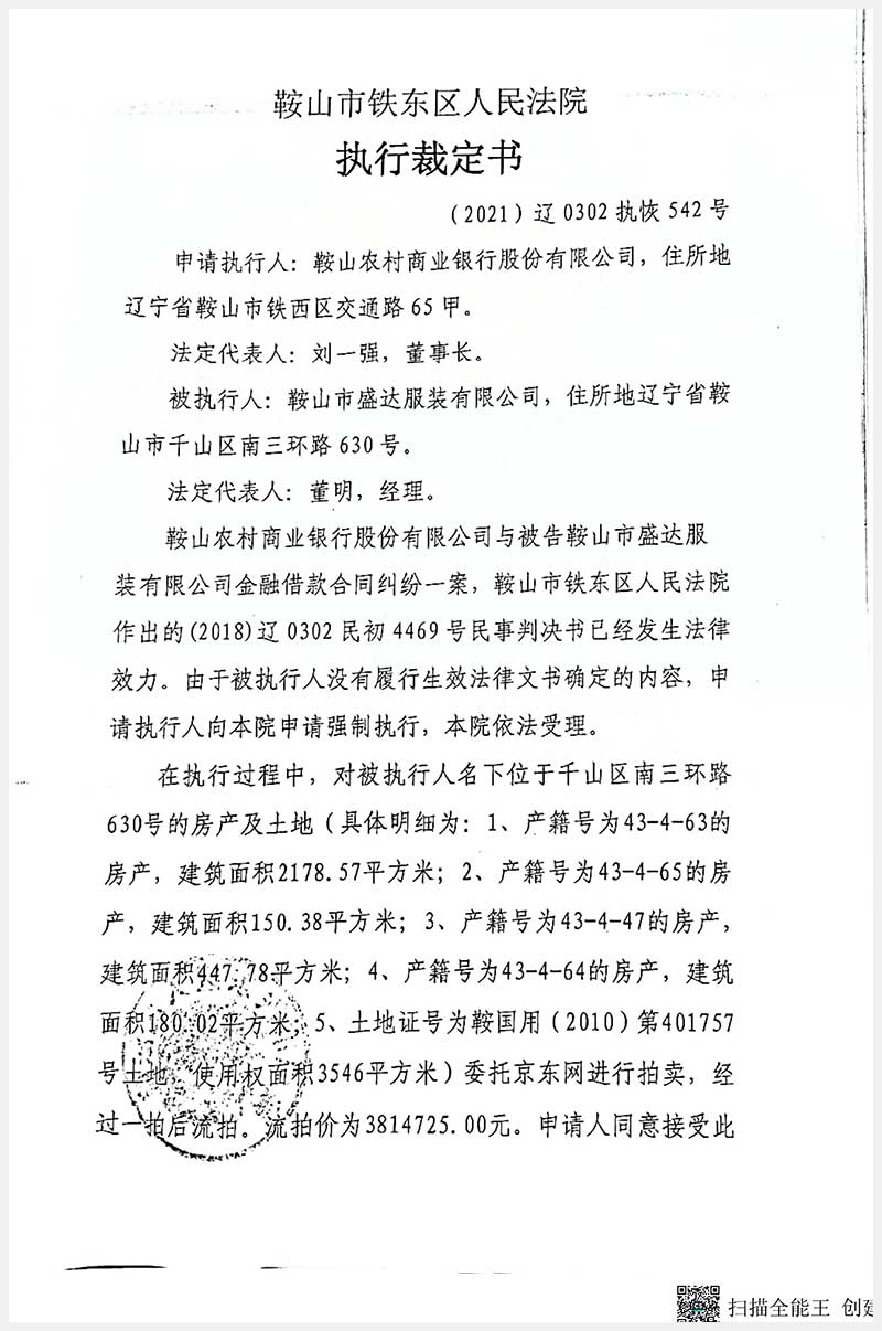 115號(hào) 鞍山市千山區(qū)南三環(huán)路630號(hào)房產(chǎn)及土地使用權(quán)