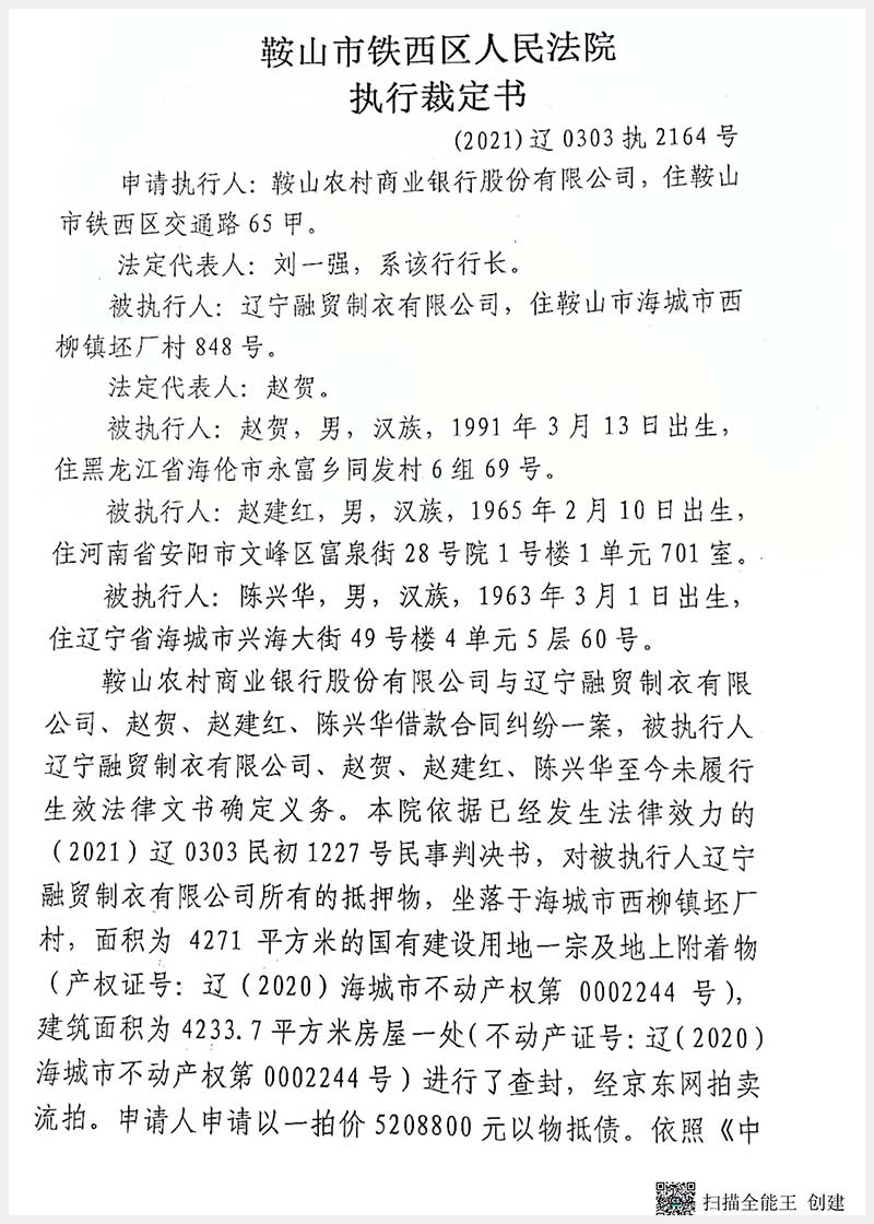 122號(hào) 海城市西柳鎮(zhèn)坯廠村房產(chǎn)及土地使用權(quán)