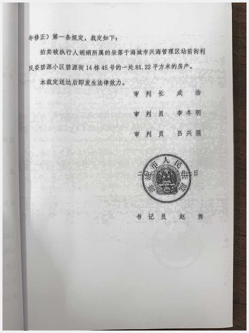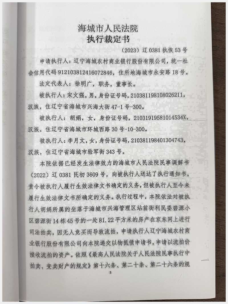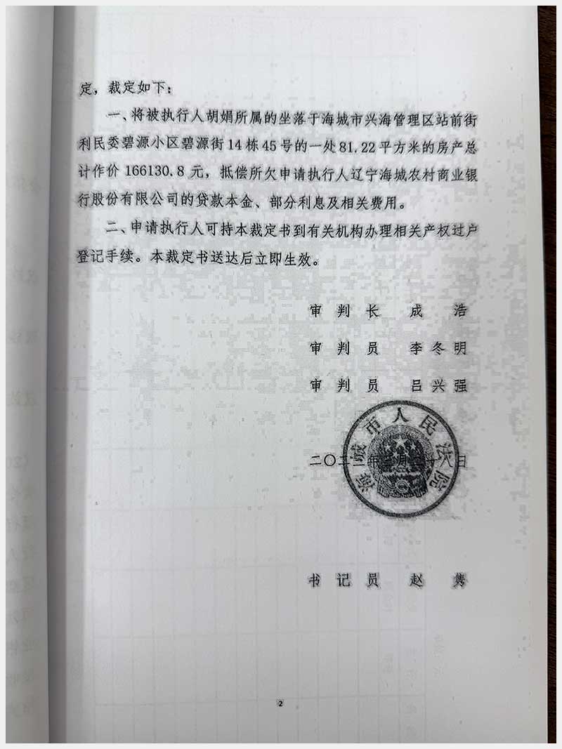 270號(hào) 海城市興海管理區(qū)站前街利民委碧園小區(qū)碧源街14棟45號(hào)房產(chǎn)