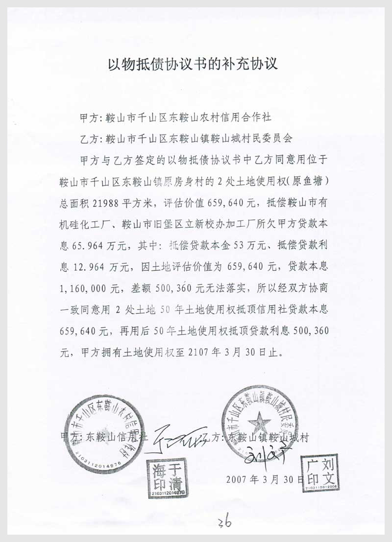 20號 鞍山市千山區(qū)東鞍山鎮(zhèn)原房身村2處土地使用權(quán)