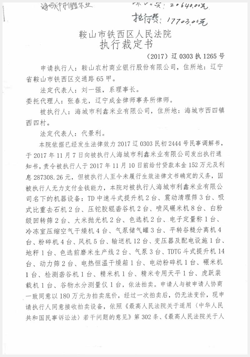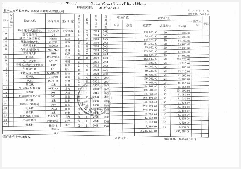 42號 海城市利鑫米業(yè)有限公司所有的機(jī)器設(shè)備