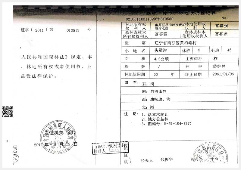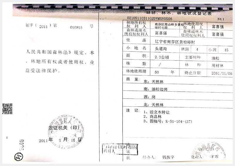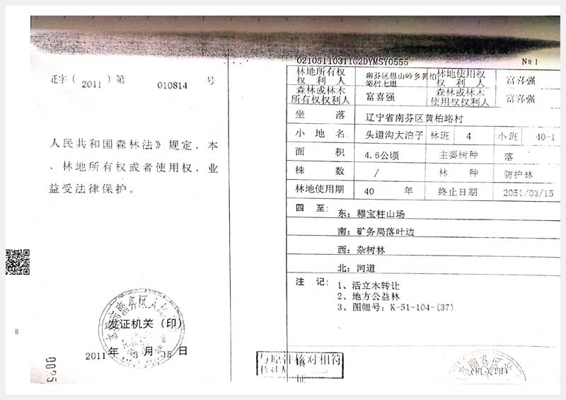 33號(hào) 南芬區(qū)黃柏村頭道溝林權(quán)