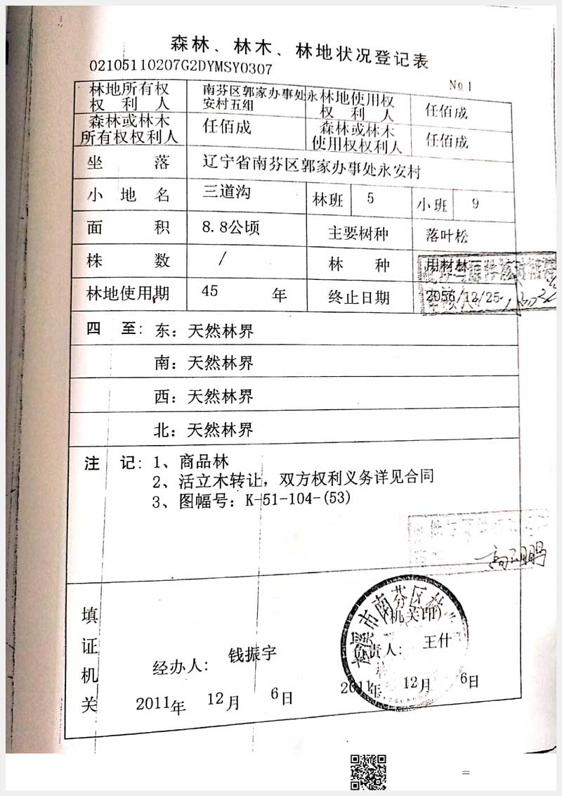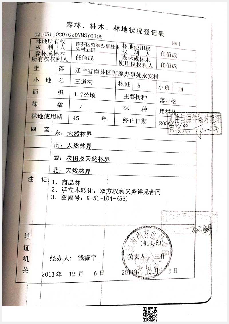 名稱:南芬區(qū)郭家街道辦事處永安村林權(quán) 面積:15.7公頃 瀏覽次數(shù):1485