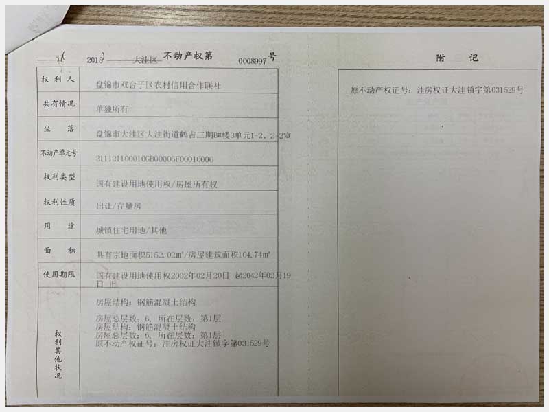 地址:盤錦市大洼鎮(zhèn)興盛街 標(biāo)的號:19