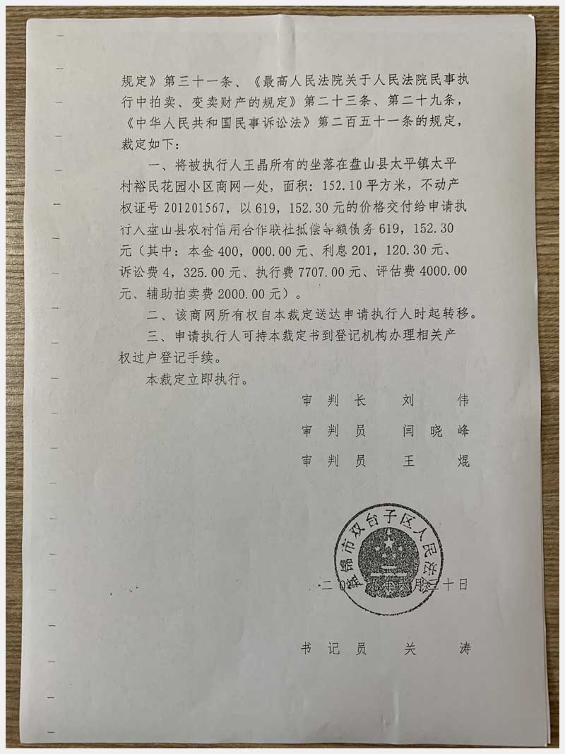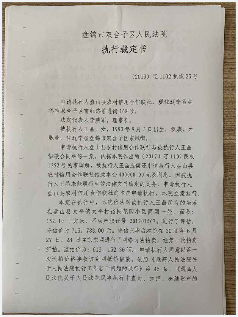 地址:盤錦盤山縣太平鎮(zhèn)太平村裕民花園小區(qū)4#(王晶) 標(biāo)的號:29