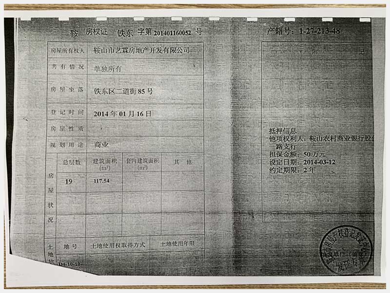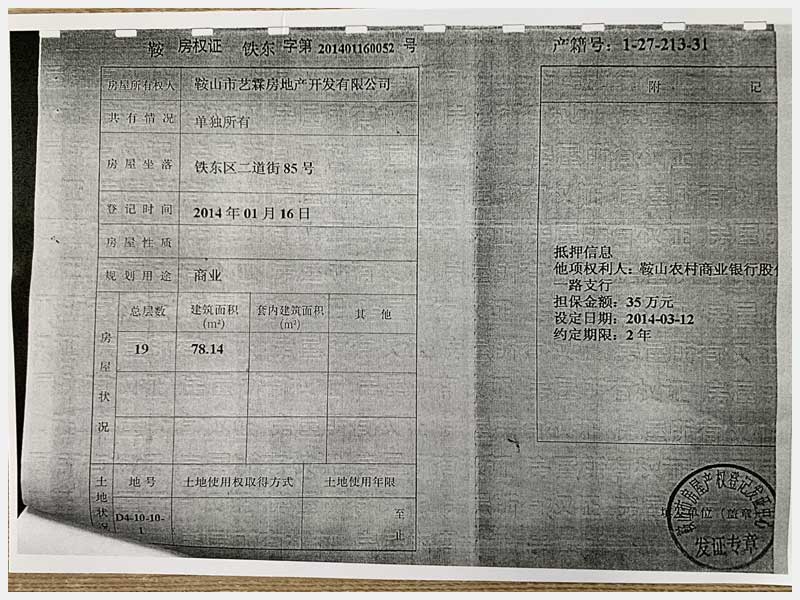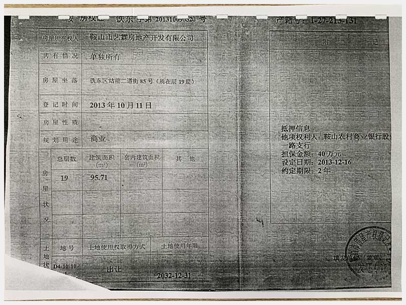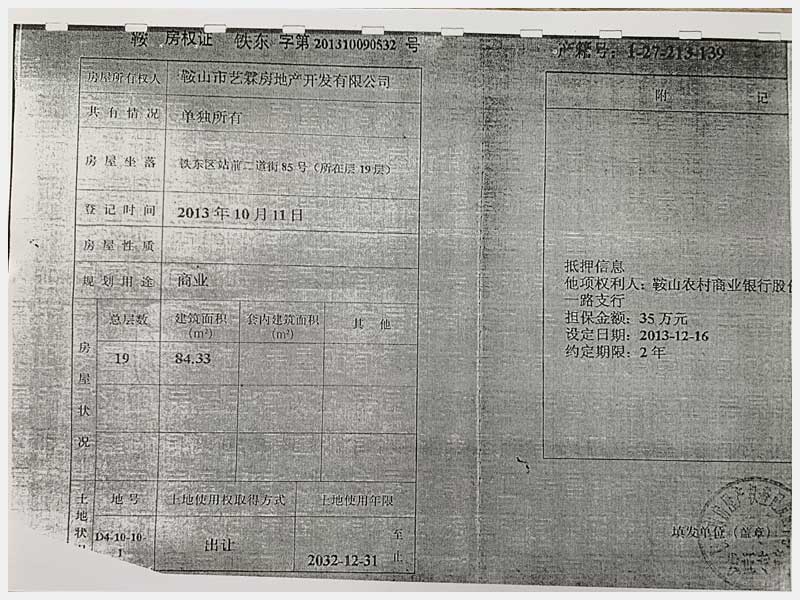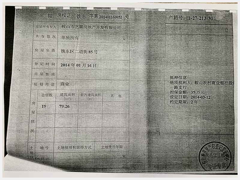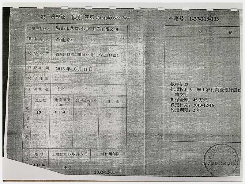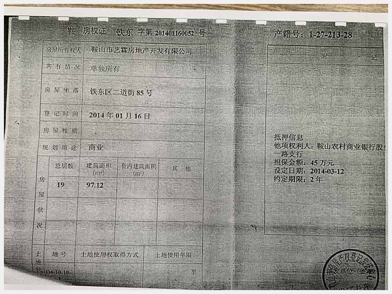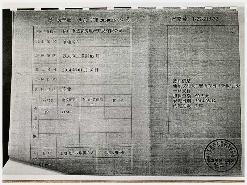 名稱:鞍山市鐵東區(qū)二道街85號房產(chǎn) 面積:1873.32㎡ 瀏覽次數(shù):1576