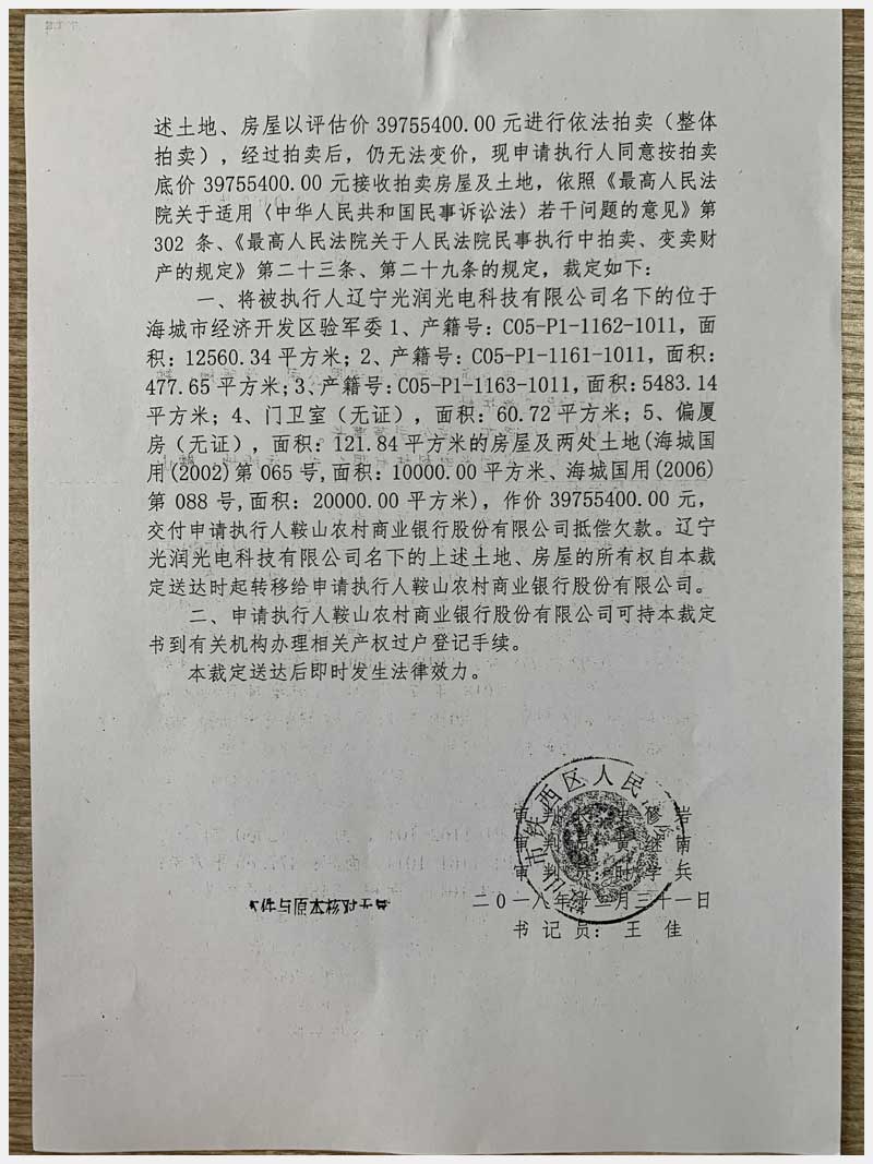 地址:鞍山市海城市經(jīng)濟開發(fā)區(qū)驗軍委 標(biāo)的號:55