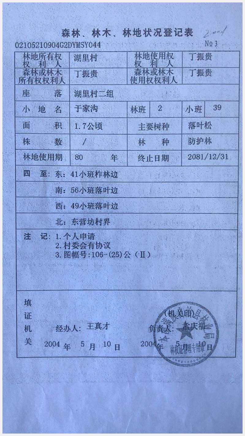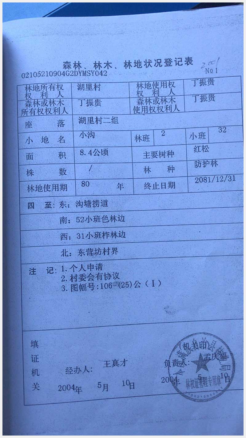78號 本溪滿族自治縣東營坊鄉(xiāng)湖里村二組紅松落葉林