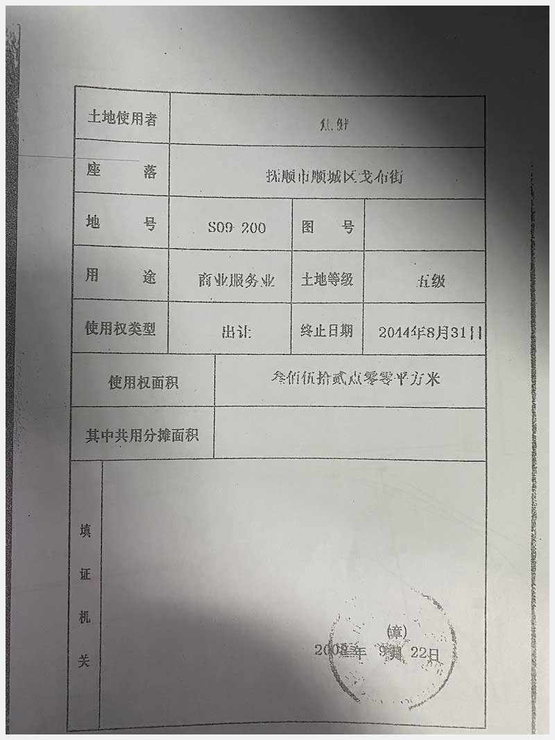 地址:撫順市順城區(qū)戈布街沈撫公路北線 標(biāo)的號(hào):2