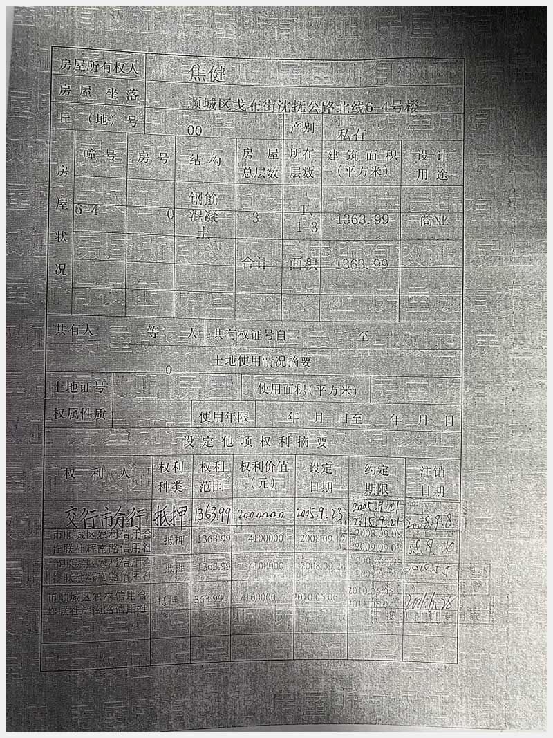 名稱:撫順市順城區(qū)戈布街沈撫公路北線6-4號(hào)樓房產(chǎn) 面積:1363.99㎡ 瀏覽次數(shù):1183