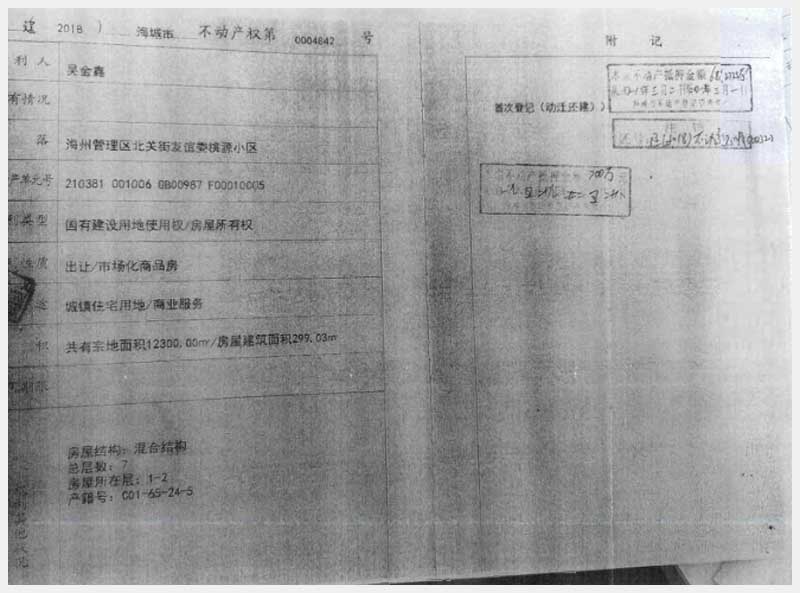 190號(hào) 海城市海洲管理區(qū)北關(guān)街友誼委桃園小區(qū)房產(chǎn)