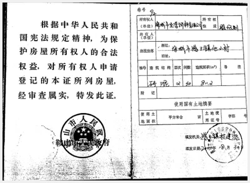 196號 海城市感王鎮(zhèn)他山村房產(chǎn)、土地使用權及機器設備