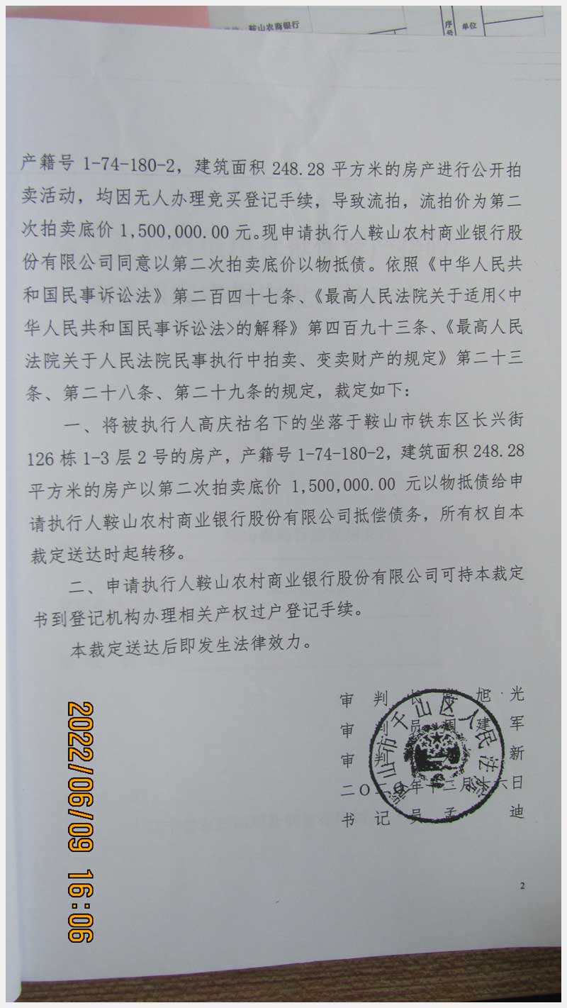 地址:鞍山市鐵東區(qū)長(zhǎng)興街126棟 標(biāo)的號(hào):85