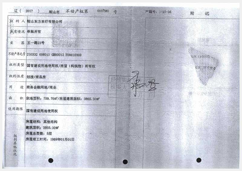 名稱:鞍山市鐵東區(qū)五一路23號房產(chǎn) 面積:3865.3㎡ 瀏覽次數(shù):931
