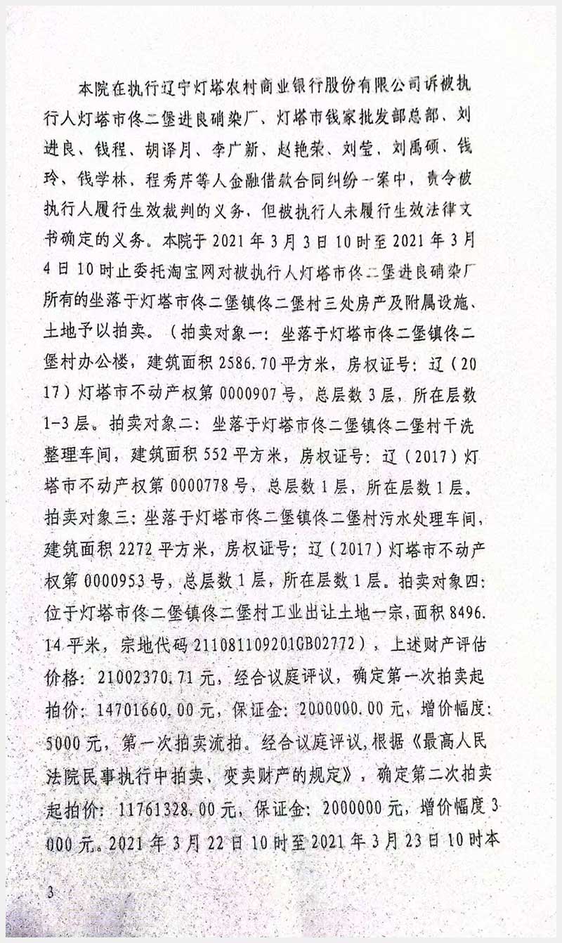 名稱:燈塔市佟二堡鎮(zhèn)佟二堡村房產(chǎn)及土地使用權(quán) 面積:房產(chǎn):5,410.7㎡;土地:8,496.14㎡ 瀏覽次數(shù):315