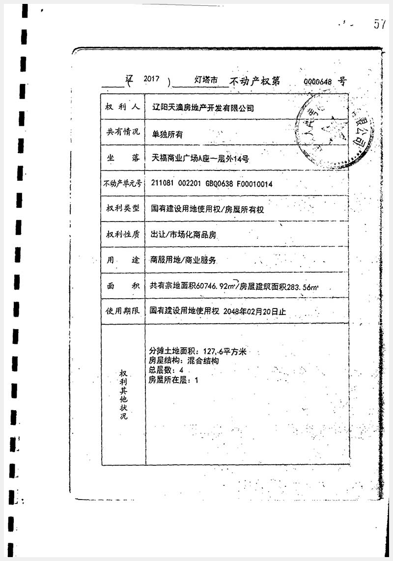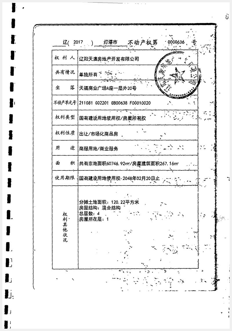 38號 遼陽市燈塔市天福商業(yè)廣場A座門市及商鋪