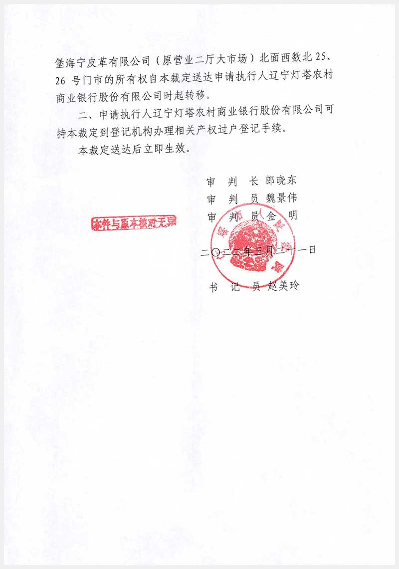 44號 燈塔市佟二堡鎮(zhèn)海寧(原營業(yè)二廳大市場)北面西數(shù)北25號、26號房產(chǎn)